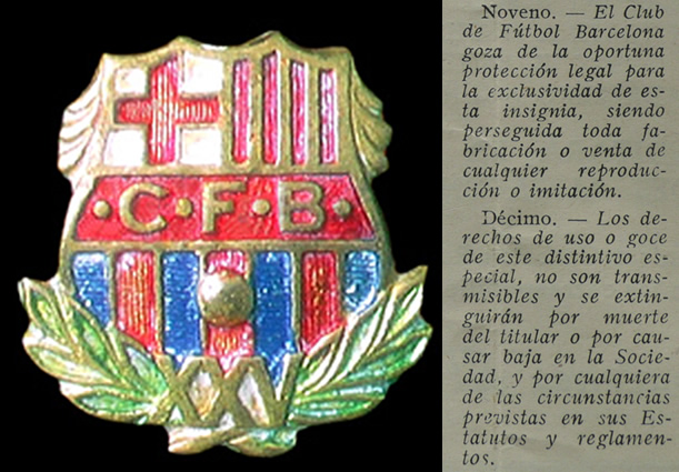 | Les primeres Insígnies de 25 Anys de Soci, finals dels 50's |