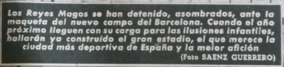 Com podem veure, a l'any 1956, encara no se sabia quin seria el nom definitiu del nou estadi del F.C. Barcelona.