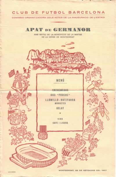 Menú de l'àpat de germanor cel·lebrat a Montserrat