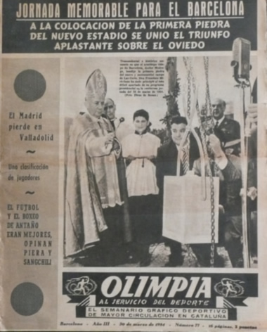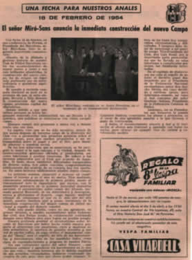 «Dentro de la dilatada y gloriosa historia de nuestro Club de Fútbol Barcelona, en- tre los acontecimientos de mayor realce y junto a sus más brillantes efemérides, la construcción del nuevo cam- po, ha de ocupar un lugar muy preferente por su extra- ordinaria y grandiosa signi- ficación.