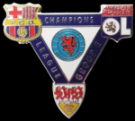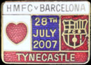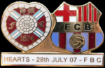 Pins commemoratius del partit amistós: Hearts 1 - F.C. Barcelona 3.